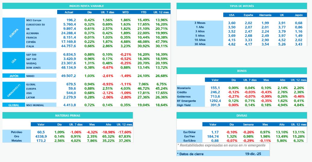 El cierre de 2025 deja una fotografía macroeconómica y de mercados razonablemente constructiva, aunque no exenta de matices relevantes que conviene subrayar.