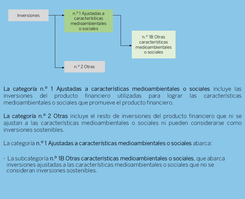 En particular, el Fondo realiza la promoción mediante la réplica de un índice de referencia de transición climática (climate transition benchmark o “CTB”), el índice MSCI Europe EU CTB Overlay Net EUR en su modalidad Net Return (el “Índice”), que tiene como índice base al MSCI Europe (MXEU Index) (el “Índice Base”). El Índice no define inversiones sostenibles entre sus componentes al amparo del art. 2.17 del Reglamento (UE) 2018/2088 sobre la divulgación de la información relativa a la sostenibilidad en el sector financiero (“SFDR”), por lo que el Fondo, al seguir como estrategia la réplica del Índice, tampoco tiene establecido ningún compromiso de realizar inversiones sostenibles.